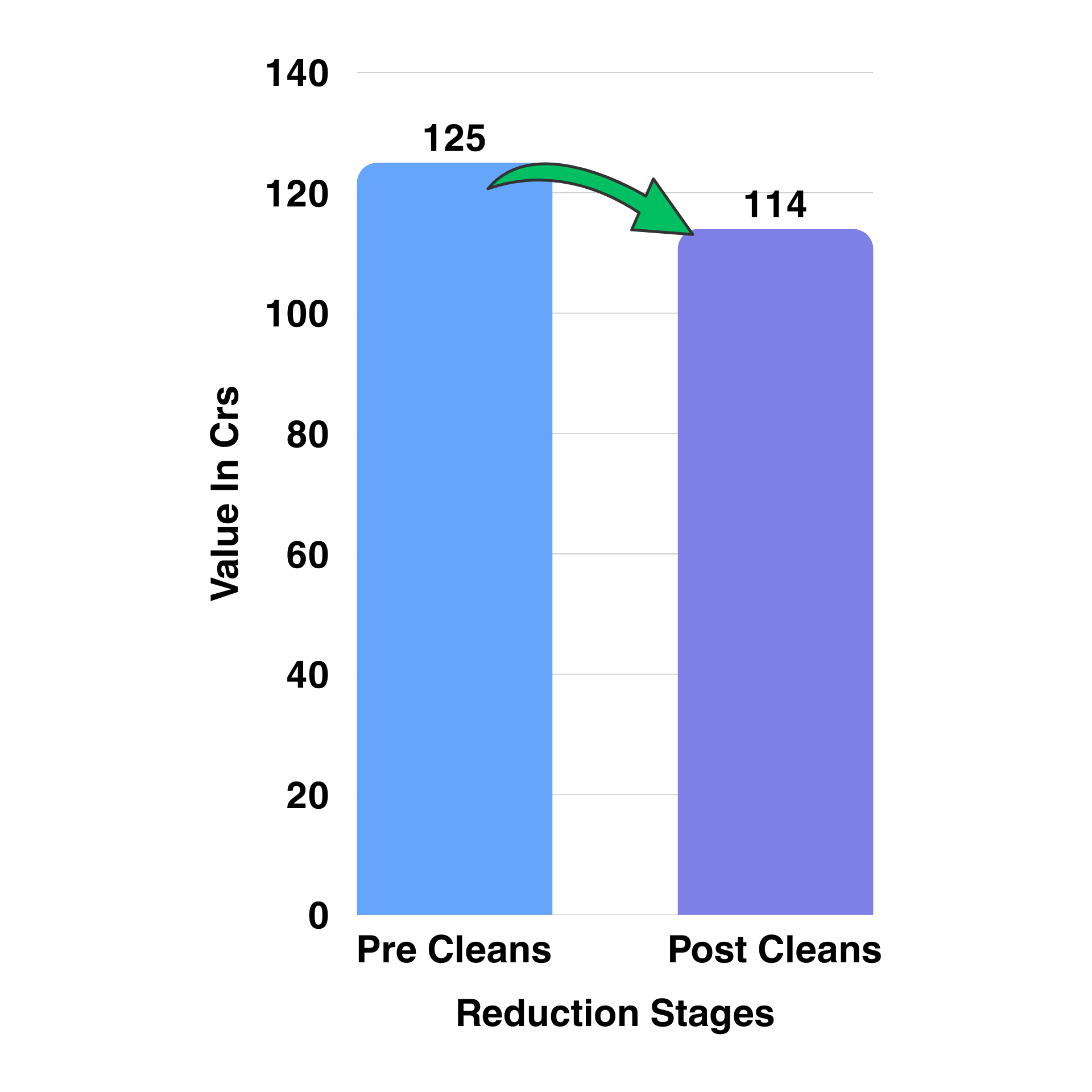Inventory volume reduced from 125cr to 114cr (approx. 9% reduction) through cleansing insights