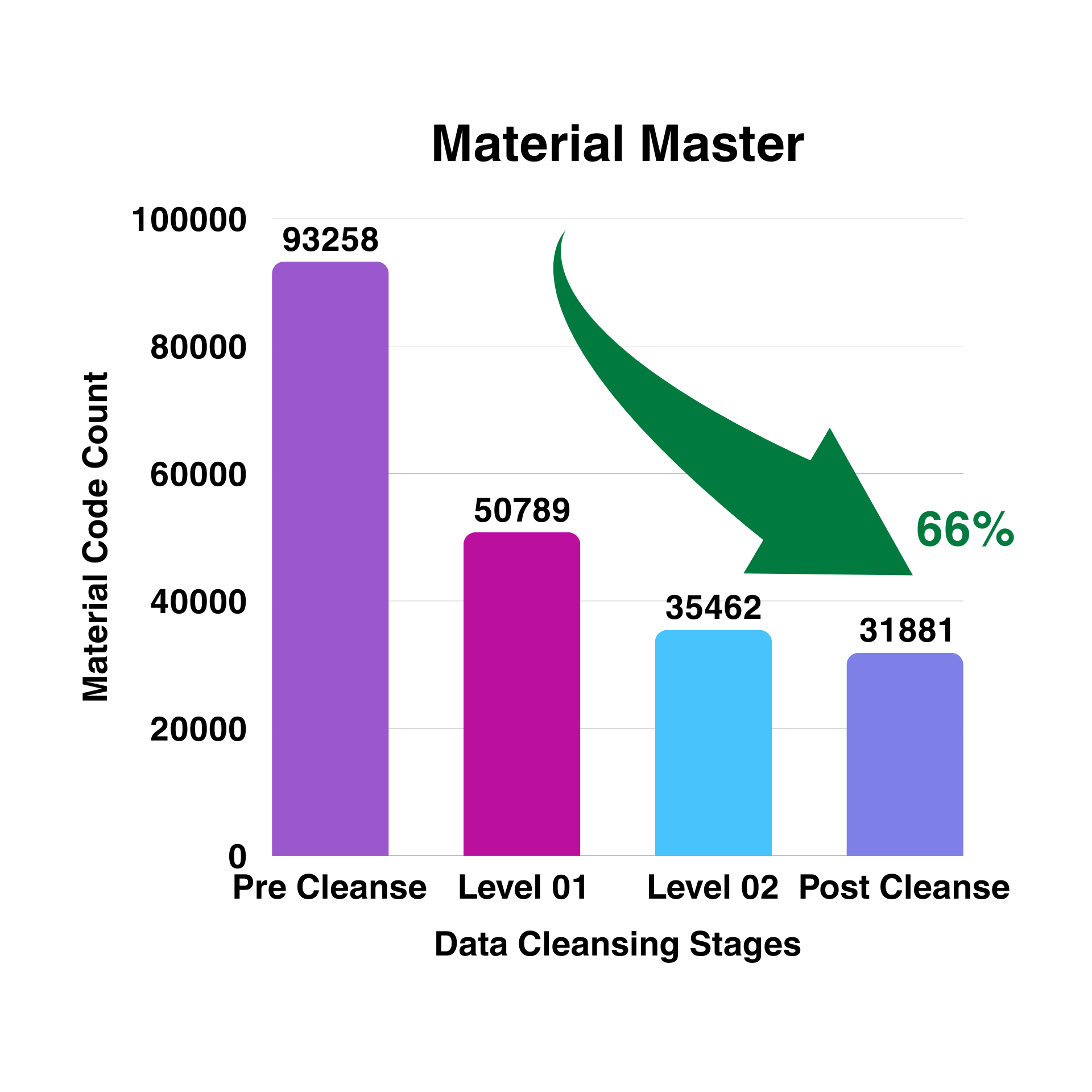 66% reduction in material codes i.e. 93,258 SKU’s reduced to 31,881 SKU’s